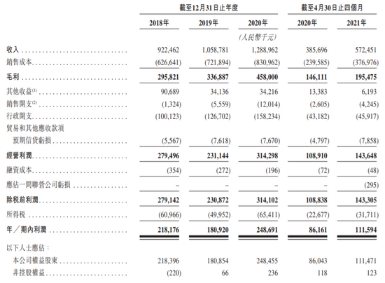 从收入方面来看,2018年、2019年、2020年,世纪金源服务物业管理服务所产生的收入分别为6.90亿元、8.18亿元、10.23亿元;增值服务所产生的收入分别为2.32亿元、2.40亿元、2.66亿元;此外,2021年前4个月,其物业管理服务和增值服务所产生的收入分别约为4.48亿元和1.24亿元。