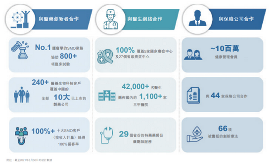 根据灼识咨询的资料,以2020年全年收入计算,思派健康的PRS经营着最大的肿瘤临床试验现场管理组织(SMO),PBM经营着最大的私营特药药房。截至2021年6月30日,公司通过中国100多个主要城市的医院、全科医生(GP)及专家的供应商网络合作伙伴为近一千万名加入了公司健康保险计划的会员提供PPS。