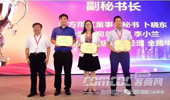 在接下来的环节,商会副会长兼秘书长徐友富为卜晓东、全路华、李小兰等三位新聘副秘书长颁发聘书。