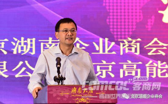 图1-北京湖南企业商会会长、北京高能时代环境技术股份有限公司董事长、北京东方雨虹防水技术股份有限公司董事长李卫国演讲
