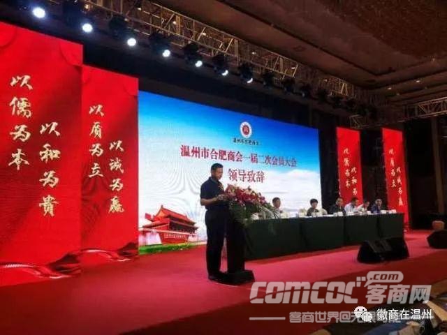 合肥市政协副主席、工商联主席、总商会会长姚亚妹代表家乡政府对温州市合肥商会的成立表示祝贺,对温州市合肥商会成立半年来所取得的可喜成绩表示祝贺。并为当年背井离乡来到温州创业白手起家的合肥籍企业家们所取得的成绩感到自豪骄傲。她用"此心安处是吾乡"勉励大家,继续发挥合肥人肯吃苦,肯奋手,肯奉献的精神为温州和合肥两地经济发展,社会公益事业多做贡献。并真诚邀请大家常回合肥看看,还详细介绍了合肥近些年的发展情况和取得的成绩。