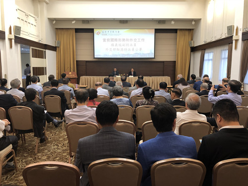 2019年7月5日,杨义瑞副特派员应邀为香港中华总商会作外交专题讲座。中华总商会会长蔡冠深主持,中华总商会会董等约100人参加。