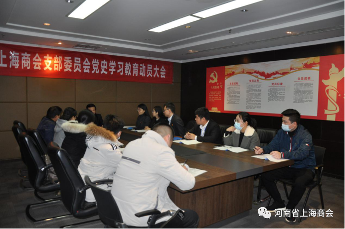 2月26日,上海商会、上海商会党支部下发了2021年001号文件《关于学习贯彻习近平总书记在“党史学习教育动员大会上重要讲话精神、开展党史学习教育”的通知》,并于3月3日上午,在上海商会党支部党员活动室召开了“中共河南省上海商会支部委员会党史学习教育动员大会”。在郑州的全体党员和入党积极分子14人参加,上海商会党支部书记陈国刚主持会议。