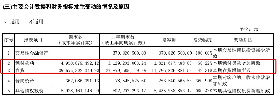 格力电器的库存和预付款项增长情况