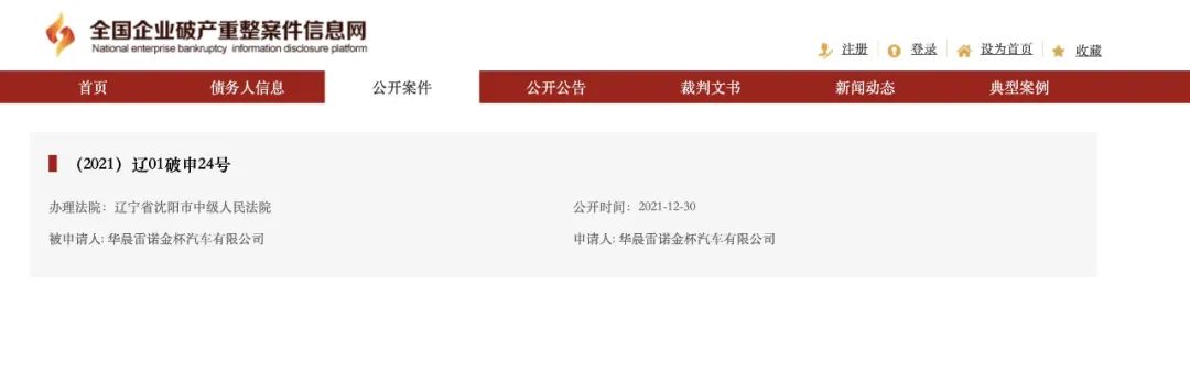 12月30日,据全国企业破产重整案件信息网消息,沈阳市中级人民法院收到了华晨雷诺提交的破产重组申请。这意味着,雷诺集团与华晨集团的合资之路将走到尽头。