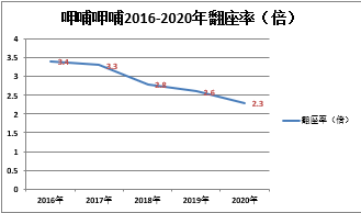 较为受打击的是,核心数据翻座率及净利增长率的一路下跌。2016-2020年,呷哺呷哺的翻座率分别为3.4倍、3.3倍、2.8倍、2.6倍、2.3倍。在2021年上半年,门店翻座率依旧维持在2.3次/天。