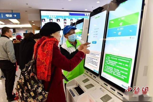 资料图:患者在指导下使用人脸识别系统预约专家号。 王广兆 摄