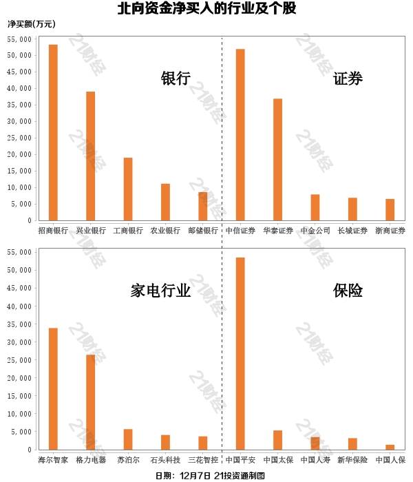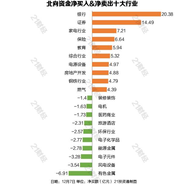 据21投资通(微信号ID:touzit21)智能监测,12月7日,北向资金净买入79.49亿元,其中沪股通净买入63.17亿元,深股通净买入16.33亿元。