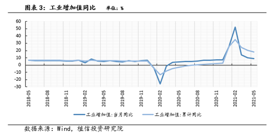 四大积极因素助力工业生产平稳增长。下半年,工业生产受外需旺盛带来中下游制造业增长、中上游价格上涨带来的盈利效应、建筑业平稳较快增长带来的建材等需求保持增长和政策红利带来的高新技术生产保持高速增长等四大因素支撑,将保持平稳增长态势。但上游多个行业限产政策可能会约束产出,6月制造业PMI中的生产指数出现较大幅度的回落且为一年以来的最低点,高温和台风等季节性因素也会对室外施工作业造成影响,对工业生产形成一定程度的拖累。综合来看,在工业生产已基本不再受到的基数效应扰动的前提下,内外需的稳步恢复有望继续带动工业生产在下半年保持平稳增长。下半年工业增加值两年平均增速有望保持在6.0-6.5%区间之内。预计2021年全年工业增加值累计增速为9.5%。