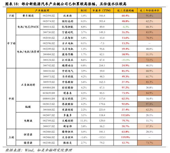 (2)新能源产业链公司多已积累较高涨幅,估值水位较高,有杀估值风险