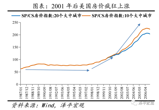 2001年后美国经济陷入衰退,为了刺激经济,美联储连续13次降息,联邦基金利率从2001年初的6.5%降低到了2003年6月的1%,30年固定利率抵押贷款合约利率从2000年5月的8.52%下降到2004年3月的5.45%。与此同时,美国政府立法要求金融机构向穷人发放贷款。宽松的贷款利率条件刺激了低收入群体的购房需求。