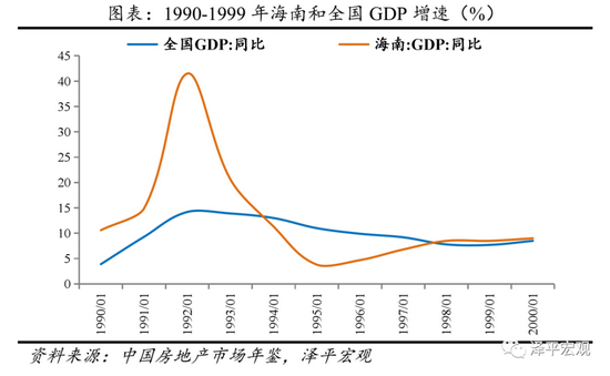 1992年,海南全省房地产投资达87亿元,占固定资产总投资的一半,仅海口一地的房地产开发面积就达800万平方米,地价由1991年的十几万元/亩飙升至600多万元/亩;同年,海口市经济增长率达到了惊人的83%,另一个热点城市三亚也达到了73.6%,海南全省财政收入的40%来源于房地产业。