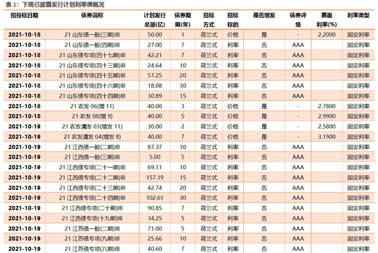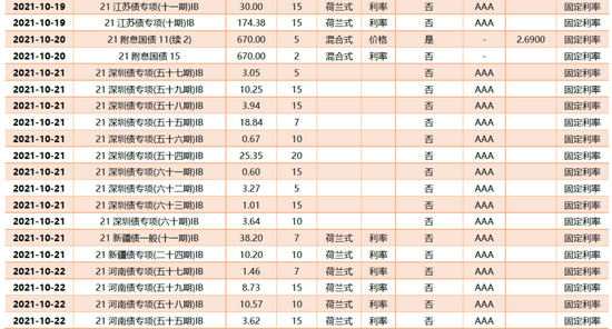 根据已公布的利率债招投标计划,从10月18日至10月22日将发行48支利率债。