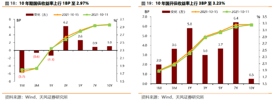 长债收益率上升,突破2.99%。周一,商务部宣布收储猪肉以抬高猪价,推升通胀预期,长债收益率大幅上行;周二,通胀情绪稍有缓和,整日在窄幅区间震荡,长债收益率收盘微幅上行。周三,大宗商品回跌,叠加股市疲弱,长债收益率小幅回落;周四,PPI数据创96年以来新高,然市场对通胀反应已经钝化,长债收益率窄幅震荡;周五,央行被问及四季度是否会降准时回应“从整个四季度来看,流动性供求的形势应当说是基本平衡的”,市场预期的降准可能性大幅降低,长债收益率大幅上行。