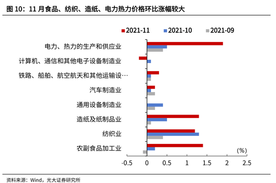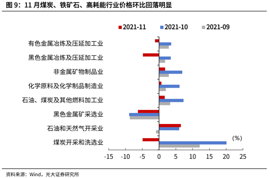 三是,尽管国内煤炭供给开始缓解,但由于国内电价上浮比例提高、加之国际能源供应偏紧,继续推动PPI上涨。