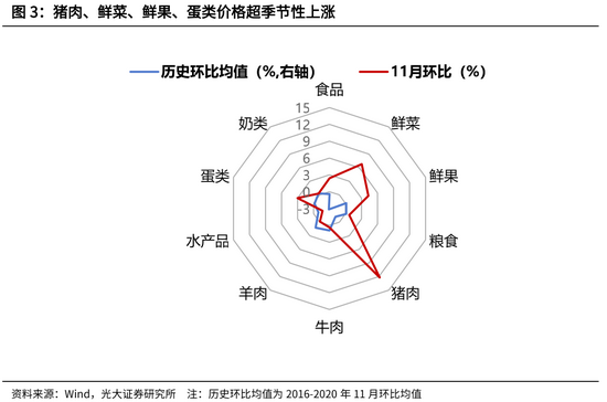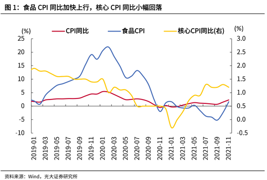 11月CPI同比自上月的1.5%加快上行至2.3%,与低基数、食品价格环比涨幅扩大有关。