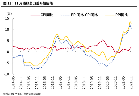 但需要注意的是,本月PPI同比回落速度偏慢。11月PPI同比上涨12.9%,高于市场预期12.0%,略高于我们的预期12.7%,我们认为原因有三。