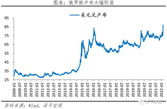 外汇方面,俄罗斯80%以上的日常外汇交易和一半的贸易都是以美元进行,切断SWIFT实施后,全球在俄罗斯的大部分资产将较难转出,促使全球资产流出俄罗斯,对俄罗斯卢布造成贬值压力;