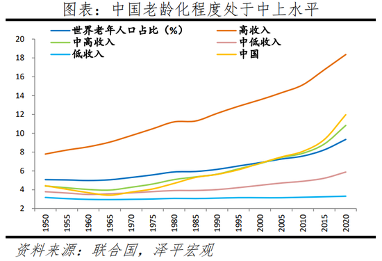 2010-2020年我国60岁及以上人口占比上升5.44个百分点,2021年65岁及以上老龄人口占比14.2%。老龄化加速到来,速度和规模前所未有。相比美欧日,我们有计划生育政策因素,人口政策经历过从鼓励到计划的大幅转向。1962年-1976年婴儿潮人口在未来5-10年加速进入老龄化。预计2033年左右进入占比超过20%的超级老龄化社会,之后持续快速上升约至2060年的35%。