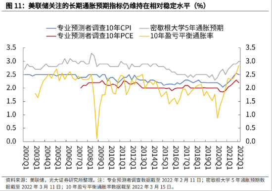 3月议息会议基本符合预期,点阵图对市场进行鹰派预期管理,有效控制通胀预期。虽然FOMC将2022年经济增长中位数从4%显著下调至2.8%,但鲍威尔多次强调美国经济维持韧性,提振市场信心,缓解市场对经济衰退的担忧。