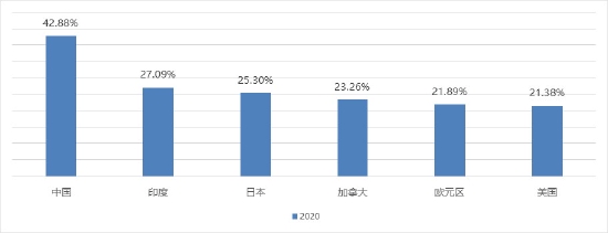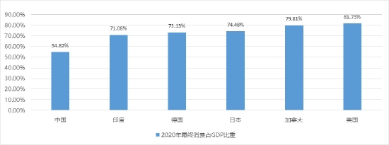 图3 2020年美国等国家与中国消费占GDP比重的对比