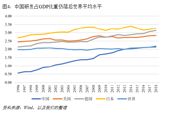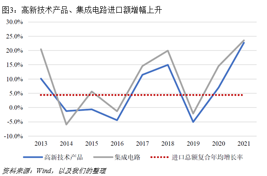 扬长补短:突破受制约局面。除了上游原材料受供应链安全影响明显,如果供应链上关键技术发展受到制约,也将威胁到中国供应链安全发展,甚至会对中国经济的正常运转造成严重冲击。从中国过去多年的进出口外贸数据不难发现,集成电路、高新技术产品是中国进口排名前列的商品,分别占进口总额约16%、31%,且复合年均增长均高于进口总额复合年均增长(2013-2021年)。对于高端制造业领域的关键技术,中国仍需要依赖从日本、德国等国进口。因此,提高产业链供应链自主可控能力,确保安全稳定需要“扬长”与“补短”双管齐下。首先,需要“扬长”强化现有比较优势,巩固优势产业之于国际供应链中的不可替低地位,增强其他国家地区对于中国优势产业的依存度,尤其是净出口规模接近6百亿美元或以上的现有优势产业,例如,纺织、服装配饰、电子电器、金属制造品、办公设备、一般工业设备、杂项制成品等。这些优势产业多为劳动密集性产业,而其发展目前面临三重压力:一是劳动密集型产业利润空间不断被压降;二是由于东南亚等地劳动力成本更低,许多劳动密集型产业已经向外迁移;三是西方国际对于中国传统优势产业关税压力有增无减。因此,“长板”产业发展需要通过算法和软件的应用创新,提升其位于全球价值链的位置,并增强与西方供应链之间的互相依存关系,强化其在供应链上的不可替代性。与此同时,不断增强的“长板”产业将有助于稳外贸,创造外汇收入,为“补短”提供有力的资金支撑。因大国博弈导致的对于关键领域与技术的封锁,使得过去一直采用的“引进技术——模仿改善——化为己用”的模式将难以复刻。这也意味着需要自下而上“补短”,即由基础科学理论向应用学科发展的基础研发比重将会逐渐上升,研发费用也将随之提高。当前,中国研发占GDP比重为2.14%,低于世界平均水平,更与美国、德国、日本之间仍存在不小差距。今年国家工作报告中指出,“延续实施研发费用加计扣除政策,将制造业企业研发费用加计扣除比例提高到100%”,将针对性支持进制造业企业科技创新“补短”,持续的技术创新,将是提高供应链韧性的根本所在。