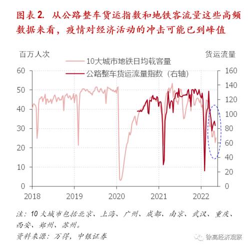 尽管疫情对经济的影响不小,但从高频数据来看,疫情的冲击程度可能已到峰值。进入5月之后,公路整车货运指数已经从4月的低位回升,10大城市地铁客运量也有企稳之势。再考虑到近几周国内新增新冠确诊病例数明显走低的趋势,最坏的时候很可能正在过去。(图表 2)