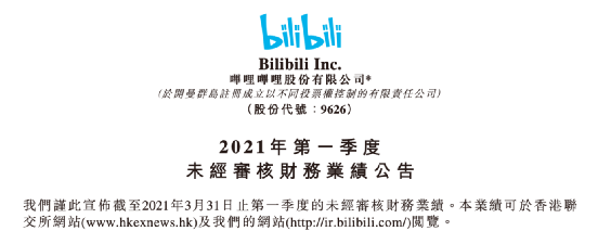 B站董事长兼首席执行官陈睿表示:“2021年一季度,我们以用户和收入的双双强劲增长拉开了序幕,让我们更加坚定地向未来增长目标迈进。伴随着‘视频化’的巨大浪潮,我们将牢牢把握市场机遇,进一步扩大在‘Z+世代’群体的影响力。”