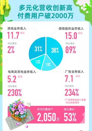 截至今年一季度,由于社区优质内容的扩充和商业化能力的提升,推动本季度月均付费用户数再创新高,达2050万,整体付费率也创下9.2%的历史新高。