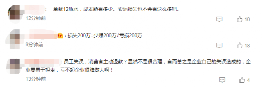 不过,也有不少网友对此事持怀疑态度,有的认为水的成本没有多少,实际损失应该没有200万这么多;有的则质疑这是店铺营销。