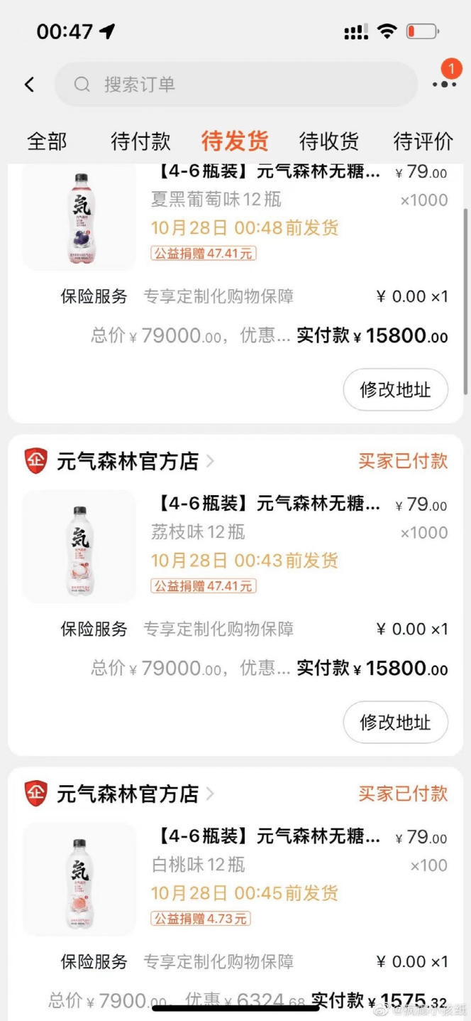 在小红书平台上,不少消费者分享了在元气森林店铺“薅羊毛”的订单,甚至有人表示买了三万瓶。