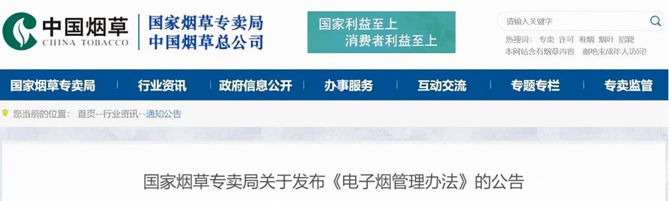 3月11日,国家烟草专卖局发布了《电子烟管理办法》的公告,于5月1日起实施,监管进入倒计时。
