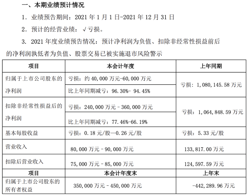 值得关注的是,在“绯闻”的裹挟下,2021年,*ST众泰股价一路走高,曾创下在42个交易日中收获了27个涨停的历史。财报预告显示,预计2021年度实现营业收入8至9亿元,归母净利润亏损4亿-6亿元,亏损缩减96.3-94.45%。对此,众泰汽车表示,公司将在年报发布后向深交所申请撤销退市风险警示,保壳有望。