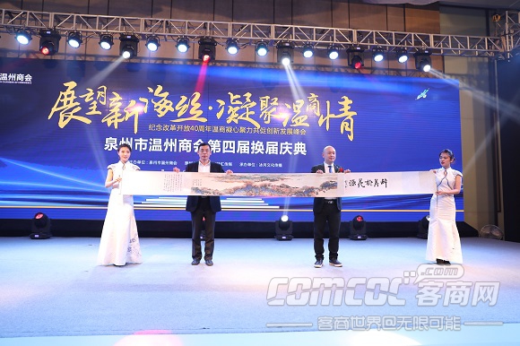 永嘉县政府向泉州市温州商会赠送楠溪江水墨画h4i客商网-商会、协会、校友会、俱乐部资源整合社交平台