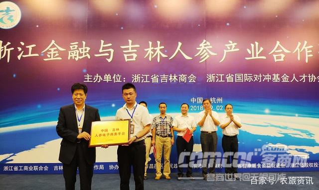 会上,浙江省吉林商会、国际对冲基金人才协会与国信证券浙江分公司签定战略合作协议;六叶农业科技有限公司与农业部特种经济动植物及产品质量监督检验测试中心签订人参检测战略合作协议;现场还举行了“中国吉林人参电子商务平台”授牌仪式,并宣布杭州长春商会成立!