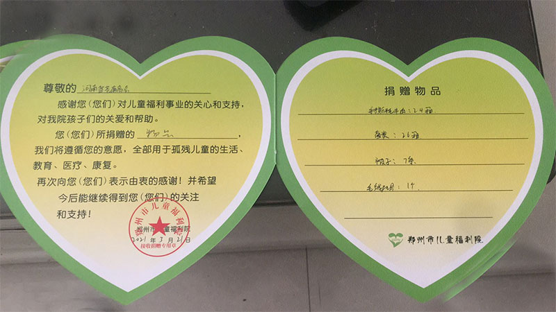 ▲图为:捐赠活动结束后,郑州市儿童福利院为捐赠者颁发爱心卡
