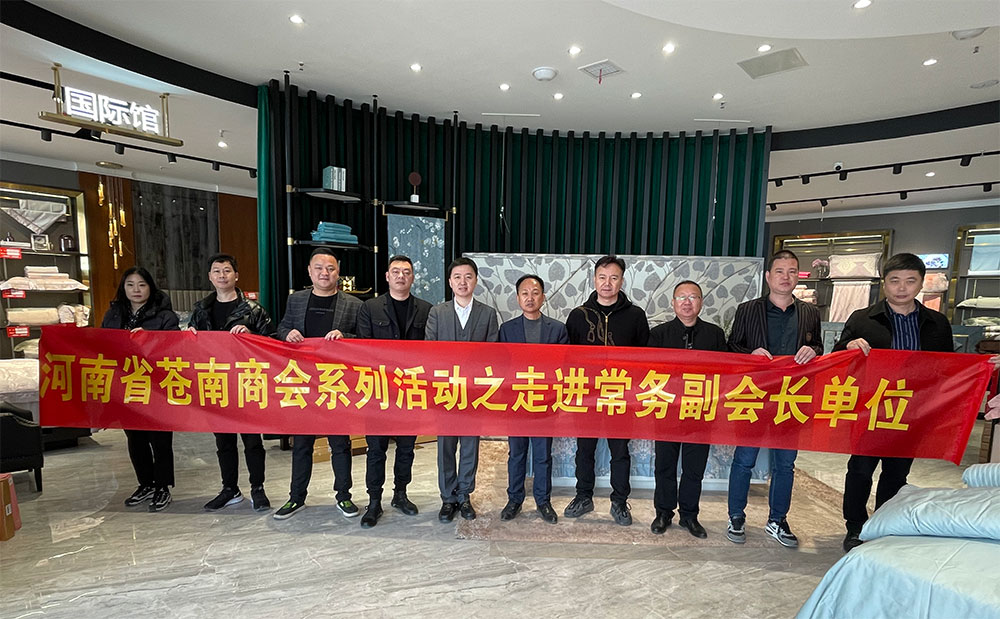捐赠活动结束后,河南苍南商会一行走进常务副会长林长飞的企业:水星家纺交流学习。